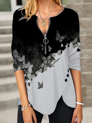 Cotton-Blend Color Block Fit V Neck Tunics is fashionable & cheap, come to Anniecloth to find out about the Clothing