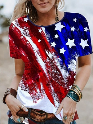 Crew Neck Casual Flag Loose T-Shirts & Tees is fashionable & cheap, come to Anniecloth to find out about the Clothing