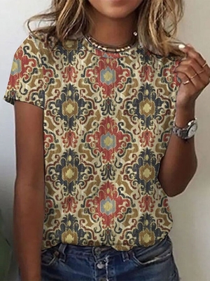 Crew Neck Jersey Geometric Regular Fit T-Shirts & Tees is fashionable & cheap, come to Anniecloth to find out about the Clothing