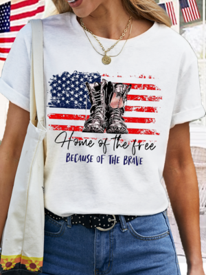 Summer Simple Text Letters Cotton Short Sleeve Crew Neck Regular