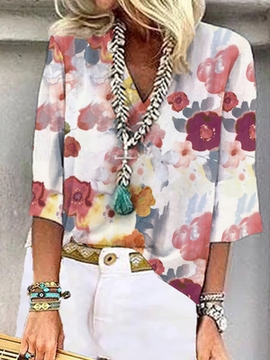 Vacation Floral V Neck Blouses is fashionable & cheap, come to Anniecloth to find out about the Clothing