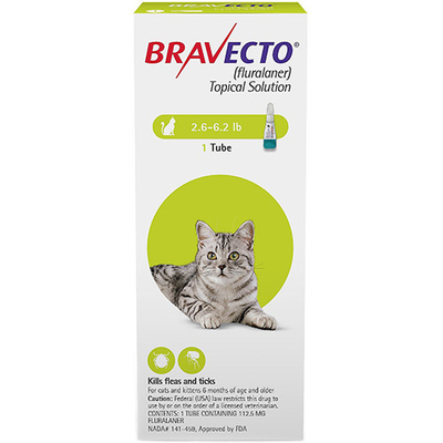 Save Up to 50% on Bravecto Spot-On For Small Cats 2.6 Lbs - 6.2 Lbs (Green) 112.5 Mg 2 Pack, Free Shipping, Save 5% on your Auto Delivery Order!