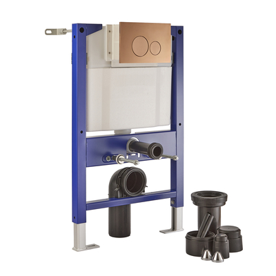 Le bâti support court, complété par un réservoir encastré est la solution sécurisée pour installer votre cuvette suspendue au mur. Avec son réservoir à double chasse d’eau pour économiser l’eau, ce bâti support robuste est compatible avec toutes nos cuvettes suspendues. Il peut être ajusté en hauteur et largeur pour une installation facile. Caractéristiques: Dimensions: l. 50 cm x P 16 cm x H 82 cm Plaque de déclenchement ronde cuivre satiné Double chasse d’eau 6/3 litres – meilleur pour l’environnement et vos factures d’eau Compatible avec toutes nos cuvettes suspendues La taille peut être ajustée – pour une installation facile Convient à une installation encastrée ou plâtrée Vanne supérieure Poids maximum: 400kg