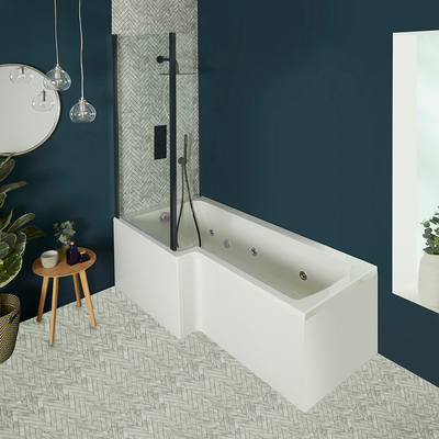 Apportez un style chic et contemporain à votre salle de bain et profitez d’une expérience de bain et de douche confortable avec la baignoire balnéo Sandford, fournie avec un pare-baignoire pivotant noir.D’un design moderne, cette baignoire balnéo offre beaucoup d’espace pour une expérience de bain et de douche luxueuse et confortable. Sa fabrication est robuste et durable, et sa finition blanche brillante est résistante et facile à nettoyer. Associez-la à notre robinetterie baignoire et à d’autres articles de la collection Sandford pour une salle de bain au look élégant et harmonieux. Caractéristiques: 14 buses de massage à eau et à air