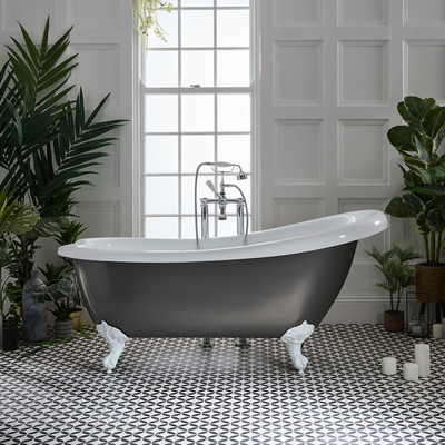 L’élégante baignoire îlot rétro Legend deviendra la pièce maîtresse de votre salle de bain. Parfaite pour créer un contraste saisissant tout en s’harmonisant avec les couleurs de votre pièce, cette baignoire est la pièce maîtresse dont vous avez besoin pour votre salle de bain. Son design en sabot élégant vous offre une expérience de bain relaxante et son extrémité haute vous assure un support au niveau des épaules et du cou vous garantissant un grand confort et sa contenance de 190 litres vous offre une expérience de bain luxueuse. La baignoire Legend bénéficie d’une construction exceptionnellement solide et robuste garantissant de nombreuses années d’utilisation. Associez-la à notre robinetterie pour baignoires îlot et d’autres produits de la gamme Legend pour un look soigné et harmonieux. Caractéristiques de la baignoire îlot rétro Legend: Dimensions: L 171 cm x l. 74 cm x H 78, 5 cm Baignoire à la finition résistante étain Pieds à la finition blanche Design rétro en sabot pour un look élé...