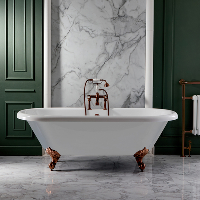 Cette superbe baignoire îlot Legend au design rétro vous permettra de changer radicalement de style dans votre salle de bain. Fabriquée en acrylique de première qualité, la baignoire îlot ne manquera pas de vous procurer une véritable relaxation tout en confort grâce à son bord roulé qui viendra supporter votre cou et vos épaules. La baignoire îlot Legend n’est pas pré-percée. Associez-la à l’un de nos robinets pour un fini soigné et harmonieux. Caractéristiques: Pieds cuivre satiné Dimensions: L. 179, 5 cm x l. 78, 5 cm x H. 62cm Fabriquée en acrylique à double couche à la finition blanche brillante – rend la baignoire très durable Pose au choix au centre d'une pièce, en îlot, près d'un mur, selon votre préférence Tablier partie intégrante du corps de la baignoire Plage non percée
