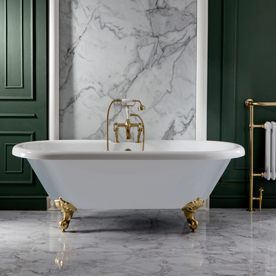 Cette superbe baignoire îlot Legend au design rétro vous permettra de changer radicalement de style dans votre salle de bain. Fabriquée en acrylique de première qualité, la baignoire îlot ne manquera pas de vous procurer une véritable relaxation tout en confort grâce à son bord roulé qui viendra supporter votre cou et vos épaules. La baignoire îlot Legend n’est pas pré-percée. Associez-la à l’un de nos robinets pour un fini soigné et harmonieux. Caractéristiques: Pieds or satiné Dimensions: L. 179, 5 cm x l. 78, 5 cm x H. 62cm Fabriquée en acrylique à double couche à la finition blanche brillante – rend la baignoire très durable Pose au choix au centre d'une pièce, en îlot, près d'un mur, selon votre préférence Tablier partie intégrante du corps de la baignoire Plage non percée