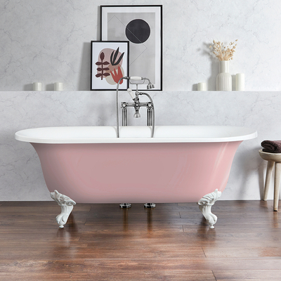 La baignoire îlot rétro à bord roulé rose (Camellia Pink) Richmond apportera grâce et élégance à votre salle de bain tout en y créant un look intemporel. Parfaite pour créer un contraste saisissant tout en s’harmonisant avec les couleurs de votre pièce, cette baignoire est la pièce maîtresse dont vous avez besoin pour votre salle de bain. Offrant une expérience de bain luxueuse et relaxante, cette baignoire dispose de rebords roulés, d’une excellente robustesse et elle résiste aux tâches et égratignures et ce pour de nombreuses années. Associez-la à notre robinetterie et à d’autres produits de la gamme Richmond pour un look soigné et harmonieux. Caractéristiques de la baignoire îlot rétro Richmond: Dimensions: L 173 cm x l. 78 cm x H 65 cm Baignoire à la finition brillante rose (Camellia Pink) et pieds décoratifs blancs Design à rebord roulé rétro pour un look élégant Bord roulé et design à double dos Fabriquée en acrylique de première qualité Peinte à la main en Grande-Bretagne Contenance: 2...