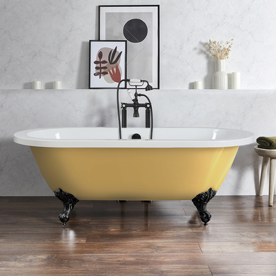 Apportez une touche majestueuse et élégante à votre salle de bain avec la baignoire îlot rétro a bord roulé et double dos jaune (Honey Yellow) Legend. Parfaite pour créer un contraste saisissant tout en s’harmonisant avec les couleurs de votre pièce, cette baignoire est la pièce maîtresse dont vous avez besoin pour votre salle de bain. Offrant une expérience de bain luxueuse et relaxante, cette baignoire dispose de rebords roulés. La baignoire Legend est robuste et résiste aux tâches et égratignures et ce pour de nombreuses années. Associez-la à notre robinetterie et à d’autres produits de la gamme Legend pour un look soigné et harmonieux. Caractéristiques: Dimensions: L 178 cm x l. 82, 5 cm x H 61 cm Baignoire à la finition jaune (Honey Yellow) et pieds décoratifs noirs Design à rebord roulé rétro pour un look élégant et un grand confort Pièce maîtresse de votre salle de bain Design à double dos Fabriquée en acrylique de première qualité Peinte à la main en Grande-Bretagne Contenance: 220 litre...