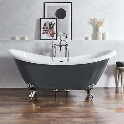 La magnifique baignoire îlot rétro à double dos Legend grise (Dark Charcoal) viendra gratifier votre salle de bain d’élégance intemporelle en y ajoutant une touche de couleur. Parfaite pour créer un contraste saisissant tout en s’harmonisant avec les couleurs de votre pièce, cette baignoire est la pièce maîtresse dont vous avez besoin pour votre salle de bain. Son design à double dos vous permet de vous installer aux deux extrémités tout en assurant un support au niveau des épaules et du cou vous garantissant un grand confort. Sa contenance de 195 litres vous offre une expérience de bain luxueuse. La baignoire Legend bénéficie d’une construction exceptionnellement solide et robuste garantissant de nombreuses années d’utilisation. Associez-la à notre robinetterie et à d’autres produits de la gamme Legend pour un look soigné et harmonieux. Caractéristiques: Dimensions: L 175 cm x l. 73 cm x H 77 cm Baignoire à la finition grise (Dark Charcoal) et pieds décoratifs chromés Design à double dos p...