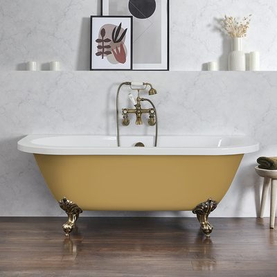 Avec son magnifique design rétro, la baignoire îlot rétro à poser au mur jaune (Honey Yellow) Richmond apportera une touche d’élégance intemporelle et colorée à votre salle de bain. Le design à poser au mur de cette baignoire îlot est idéal pour les plus petits espaces dans lesquels une baignoire îlot classique ne serait pas une option. Elle est robuste et résiste aux tâches et égratignures et ce pour de nombreuses années. La baignoire Richmond dispose d’un design à double dos, vous pouvez donc vous installer confortablement aux deux extrémités et sa contenance de 190 litres vous offre une expérience de bain luxueuse. Associez-la à notre robinetterie et à d’autres produits de la gamme Richmond pour un look soigné et harmonieux. Caractéristiques de la baignoire îlot rétro Richmond: Dimensions: L 168, 5 cm x l. 78 cm x H 62, 5 cm Baignoire à la finition jaune (Honey Yellow) et pieds décoratifs or brossé Design à rebord roulé rétro pour un look élégant Bord roulé et design à double dos Fabriquée e...