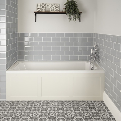 Accentuez le style d’inspiration rustique ou vintage avec la baignoire Richmond, munie d’un tablier frontal blanc crème. Idéale pour créer un look rétro et intemporel, elle est robuste et durable et dotée d’une finition blanche émaillée facile à nettoyer. Sa fabrication est très rigide et elle ne craint pas le passage du temps. Cette baignoire vous est fournie avec sa plage non percée pour laisser le choix entre la robinetterie murale ou sur gorge en perçant les trous pour accueillir les robinets. Associez-la aux meubles blanc crème Thornton pour une salle de bain au look élégant et harmonieux. Caractéristiques de la baignoire Richmond:
