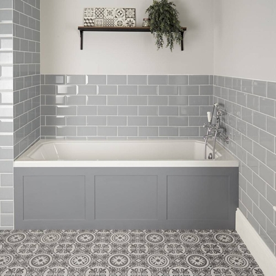 La baignoire Richmond, munie d’un tablier frontal gris clair, est idéale pour une salle de bain d’inspiration rustique ou vintage.D’un design intemporel, elle est dotée d’une finition blanche émaillée facile à nettoyer et elle offre une expérience de bain relaxante et confortable. Grâce à sa fabrication rigide et renforcée, elle ne craint pas le passage du temps. Fournie avec sa plage non percée, cette baignoire se prête au perçage pour vous laisser le choix entre la robinetterie murale ou sur gorge. Associez-la aux meubles gris clair Thornton pour une salle de bain au look élégant et harmonieux. Caractéristiques de la baignoire Richmond: