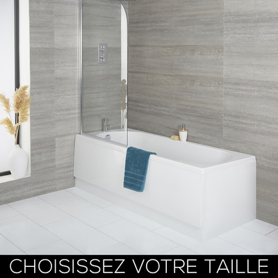 Dimensions allant de 150 cm x 70 cm à 180 cm x 80 cm pour un agencement parfait Choix de tablier latéral, bonde et siphon pour compléter l’installation de votre baignoire (disponibles dans le menu déroulant ci-dessus) Dimensions pare baignoire: l. 80 cm x H 140 cm Pare baignoire en verre trempé de 6 mm, facile à nettoyer Fournie avec un tablier frontal Fabriquée en acrylique Lucite® de 4 mm de première qualité Renforcée de résine et de fibre de verre – résistante aux taches et aux rayures Finition blanche émaillée résistante et facile à nettoyer Plinthe entièrement enfermée qui dissimule toute la base de la baignoire et la renforce Plage non percée – convient à une utilisation avec de la robinetterie murale ou sur gorge Fabriquée en Grande-Bretagne Pieds réglables en hauteur pour faciliter la mise à niveau Garantie: 10 ans Conforme à la norme EN 14516:2015+A1: 2018 Qu’est-ce qui est inclus ? Baignoire rectangulaire