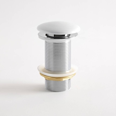 Dimensions: l. 6, 84 cm x H 10, 4 cm Finition blanche et haut de gamme Fabriquée en acier inoxydable durable Design bouton-poussoir, facile à utiliser Sans trop-plein – convient à une utilisation avec nos lavabos sans trop-plein Garantie: 10 ans