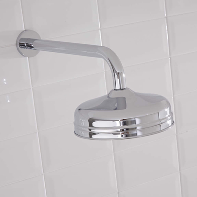 Accentuez le style de votre salle de bain ou de votre suite parentale avec le bras mural pour pommeau de douche Elizabeth. Son design rétro et incurvé le rend parfait pour une utilisation avec tous nos pommeaux de douche fixes. Ce bras mural d’une longueur de 34, 2 cm vous permet d’installer votre pommeau et de profiter d’une expérience de douche luxueuse avec un espace ample. Il est fabriqué en laiton massif durable et doté d’une finition résistante chromée. Caractéristiques du bras mural Elizabeth :: Dimensions: l. 2, 4 cm x L 34, 2 cm Pose murale Fabriqué en laiton massif durable à la finition chromée Pression recommandée: 0, 5 bar Garantie 10 ans Vous aurez également besoin de: (voir nos produits auxiliaires) Pommeau de douche