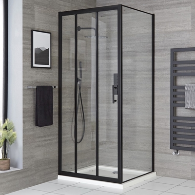 Dimensions: l. 80 cm x 195 cm Comprend une paroi de retour de 80 cm Porte à trois volets pour optimiser l’espace d’entrée Verre trempé de 6 mm pour la sécurité et la résistance (5 mm pour la porte) Profilés en aluminium noir mat et poignée en laiton pour un look contemporain Conçue pour s’installer entre deux murs ou en angle avec une paroi de retour Équipée d’un joint magnétique pour assurer la fermeture et l'étanchéité de la porte Hauteur: 195 c...