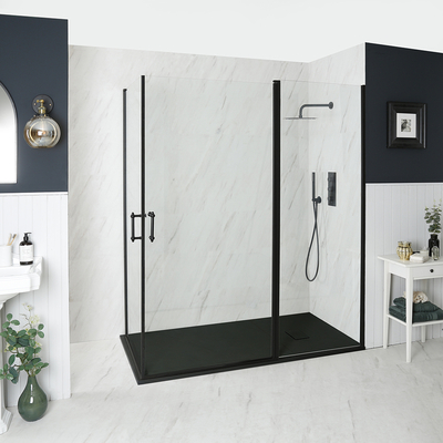 Rénovez votre salle de bain avec la cabine de douche d’angle rétro noire à double portes pivotantes Langley complétée par un receveur à effet texturé et une bonde à écoulement rapide. La cabine de douche Langley est disponible en différentes tailles et le receveur à effet texturé avec une finition anthracite, blanche ou gris clair pour assurer une adaptation parfaite à votre pièce – faites simplement votre sélection parmi les options ci-dessus. La cabine de douche Langley dispose de deux portes pivotantes créant un accès facile à l’espace de douche. Elle utilise un verre trempé de 6 mm d’épaisseur pour plus de sécurité et de tranquillité d’esprit et sa hauteur de 195 cm permet de contenir un grand nombre d’éclaboussures. Ses profilés noir mat et ses poignées rétro lui donnent un look chic et élégant. Le receveur de douche léger et durable est doté d’une finition effet ardoise pour une sensation naturelle et ne mesure que 3 cm de haut pour un accès facile à l’espace de douche. Associez-la...