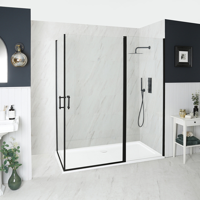 Rénovez votre salle de bain avec la cabine de douche d’angle rétro noire à doubles portes pivotantes Langley complétée par un receveur et une bonde à écoulement rapide. La cabine de douche Langley est disponible en différentes tailles pour assurer une adaptation parfaite à votre pièce – faites simplement votre sélection parmi les options ci-dessus. La cabine de douche Langley dispose de deux portes pivotantes créant un accès facile à l’espace de douche. Elle utilise un verre trempé de 6 mm d’épaisseur pour plus de sécurité et de tranquillité d’esprit et sa hauteur de 195 cm permet de contenir un grand nombre d’éclaboussures. Ses profilés noir mat et ses poignées rétro lui donnent un look chic et élégant. Le receveur de douche léger et durable ne mesure que 3 cm de haut pour un accès facile à l’espace de douche. Associez-la à un kit de douche Langley pour un fini soigné et harmonieux. Caractéristiques de la cabine de douche à doubles portes pivotantes Langley: Choix de tailles pour une ada...