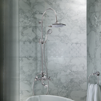 Créez un look élégant et rétro dans votre salle de bain avec la colonne bain-douche Earlham, comprenant un mitigeur bain-douche mural avec pommeau et une douchette sur clip. Fabriquée en laiton de première qualité, ce kit bain-douche présente un design inspiré du style Art Déco pour un look ancien et sophistiqué. Le pommeau vous offre un tomber d’eau en pluie pour une expérience de douche relaxante, tandis que la douchette dispose d’un jet d’eau rafraîchissant. Associez-la à d'autres articles de la collection Earlham pour un fini soigné et harmonieux. Caractéristiques: Dimensions: l. 25, 4 cm x P 51, 2 cm x H 122, 1 cm Design Art Déco – pour un look intemporel et rétro Finition chromée résistante aux traces de doigts et d'éclaboussures