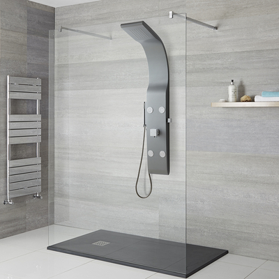 Profitez d’une expérience de douche luxueuse tout en apportant une touche de modernité à votre salle de bain grâce à la colonne de douche moderne anthracite Alston. Cette colonne allie design moderne à la finition anthracite et parfaites fonctionnalités. Elle est facile d’utilisation et dispose d’un pommeau de douche au tomber en eau de pluie, quatre buses hydromassantes et une douchette. Le large pommeau de douche offre un tomber en eau de pluie pour une douche apaisante alors que les buses hydromassantes vous laisseront un sentiment revigorant. La douchette et son jet rafraîchissant quant à elle, repose sur son support lorsqu’elle n’est pas en utilisation pour un fini soigné et harmonieux. Caractéristiques de la colonne de douche moderne avec pommeau, douchette et jets Alston: Dimensions: l. 20 cm x P 51, 5 cm x H 132 cm Design contemporain – parfait pour une salle de bain moderne Fabriquée en ABS résistant de première qualité Contrôle mécanique de la température Large pommeau de douche pou...