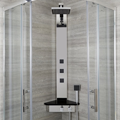 Ajoutez un style design à votre salle de bain et profitez d’une expérience de douche relaxante avec la colonne de douche thermostatique d’angle Earby. Fabriquée en acier inoxydable durable, son design d’angle vous offre un gain de place et la rend idéale pour les petites salles de bains et les suites parentales. Cette colonne de douche comprend un pommeau de grande taille, trois buses hydromassantes et une douchette avec flexible pour une expérience de douche luxueuse. Caractéristiques de la colonne de douche d’angle Earby: