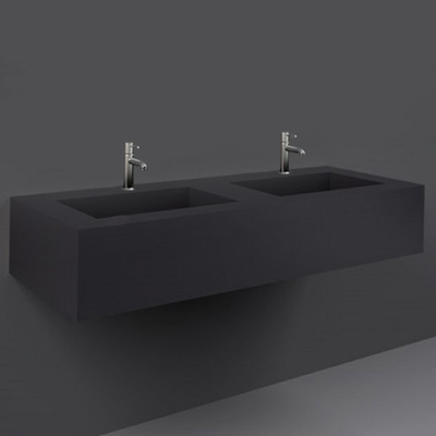 Dimensions: l. 123 cm x P 47 cm x H 22 cm Finition: Uni Dark Black (Noir foncé)1 trou pour la robinetterie (pour chaque vasque)