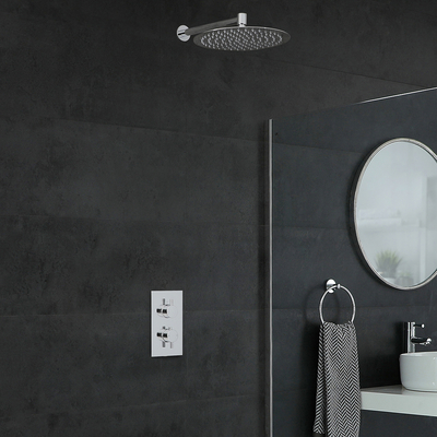 Ajoutez une touche design à votre salle de bain avec le kit de douche thermostatique Como, composé d’un mitigeur, d’un pommeau rond fixe et d’un bras mural. Le design moderne est accentué par sa finition chromée et épurée. Le mitigeur en laiton massif dispose d’une sécurité anti-brûlures qui coupe le débit de l’eau lorsque la température est trop élevée. Il est doté de commandes rondes et modernes qui permettent un contrôle facile du débit et de la température de l’eau. Le pommeau rond est fabriqué en acier inoxydable et équipé de picots en silicone anticalcaire. Un bras mural est fourni pour faciliter l’installation du pommeau à 33 cm du mur et pour assurer une expérience de douche luxueuse. Accentuez le look contemporain dans votre salle de bain en associant ce kit de douche à d’autres articles de la collection Como. Caractéristiques du kit de douche thermostatique Como: Design moderne et élégant à la finition chromée – idéal pour les salles de bains contemporaines Pommeau en acier ino...