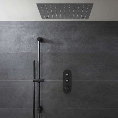 Apportez une touche contemporaine à votre salle de bain avec la douche thermostatique Idro facile d’utilisation, complétée par un pommeau de douche encastrable carré et une douchette sur rampe. La douche thermostatique en laiton massif dispose de commandes à boutons poussoir pour une utilisation simple, vous permettant d’alterner entre le pommeau et la douchette ou de les utiliser en même temps. Elle est dotée d’une technologie anti-brûlures, vous garantissant sécurité et confort, et ce, en tout temps. Le large pommeau de douche encastrable vous offre un tomber de l’eau en pluie, vous offrant une expérience de douche relaxante. Fabriquée en acier inoxydable, ses picots en silicone anticalcaire permettent un nettoyage facile. Caractéristiques de la douche thermostatique Idro: Design contemporain – pour une salle de bain moderne Boutons poussoir – pour un contrôle facile de chaque fonction Pommeau de douche carré encastrable Douchette sur rampe en laiton avec raccord coudé intégré et flexible...