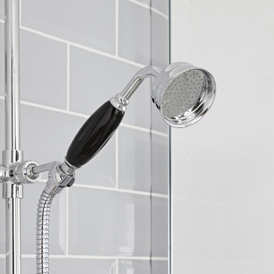 D'un design intemporel et élégant, la douchette rétro noire et chromée Elizabeth est solution idéale pour remplacer votre douchette ancienne. Fabriquée en laiton massif durable, elle est dotée d'une finition chromée résistante et d'une poignée en céramique noire à l’aspect vintage. Simple et rapide à installer, cette douchette diffuse un jet d'eau rafraîchissant. Combinez-la à d'autres articles chromés et noirs de la collection Elizabeth pour un look rétro et une salle de bain parfaitement harmonieuse. Caractéristiques de la douchette Elizabeth:
