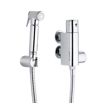 Le kit douchette hygiène thermostatique Como apportera une touche design à votre salle de bain et il complétera l’installation de votre bidet.L’ensemble, doté d’une finition résistante chromée, se compose d’un mitigeur thermostatique, d’une douchette hygiène et d’un support mural. Le mitigeur en laiton massif offre un contrôle facile et prévient les fluctuations et extrêmes de température. La petite superficie de la douchette, fabriquée en laiton, fournit un jet d’eau sous pression à travers ses 24 picots. L’aspect soigné de ce kit est assuré par le support mural en laiton massif pour y ranger la douchette entre chaque utilisation. Accentuez le look moderne en l’associant à d’autres articles de la collection Como pour une salle de bain design. Caractéristiques du kit douchette thermostatique Como: Design moderne – idéal pour les salles de bains contemporaines Contrôle thermostatique et sécurité anti-brûlures pour éviter les fluctuations et les extrêmes de température Douchette en laiton...