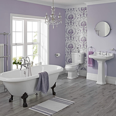 Optez pour un design rétro très en vogue, avec cet ensemble pour salle de bain, composé d'une baignoire à plage non percée, en harmonie, avec son lavabo à deux trous, leur robinetterie et bondes, un toilette wc assorti. Baignoire sur pieds forme sabot L. 179, 5 cm ; l. 78, 5 cm ; H. 62 cm. Matériau: acrylique. Monobloc double épaisseur, de 4-6mm, renforcée par fibre de verre et de résine de 6-8mm en son centre. Baignoire de grande qualité, d'une épaisseur de 14-20mm pour les parois et de 25mm pour le fond. Plage non percée. Diamètre du trou d'évacuation 55mm. Pieds pattes de lion peints noirs. Poids 32kg & Contenance 212 litres. Siphon, vidage bonde et rallonges caches-tuyauterie pour la robinetterie fournis. Lavabo sur colonne.L. 60cm H. 91.5cm Profondeur 50cm. Percé de deux trous pour la robinetterie. Diamètre des trous 30mm. Matériau: céramique blanche. Livré avec bonde à chaînette.WC avec réservoir.Mécanisme chasse d'eau inclus. Matériau: céramique blanche. Sortie horizontale. Abattant lunette thermoplastique blanc, avec frein de chute. Livré avec une poignée en métal simple pour actionner la chasse d'eau. Paire de robinets pour lavabo en laiton massif chromé.Détails céramique gravé à l'encre noire H & C.Mélangeur de baignoire en laiton massif chromé.Détails céramique gravé à l'encre noire H & C. Dimensions complètes et le style des pieds sous la photo principale. Miroir, sèche-serviettes, accessoires et objets de décoration non fournis. Baignoire, Lavabo et WC: Garantie 5 ans. Robinetterie: Garantie 10 ans.