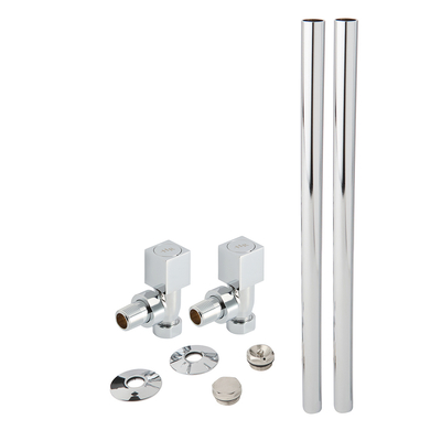 Apportez les touches finales à l’installation de votre radiateur ou sèche-serviettes avec l’ensemble tuyaux et robinets de radiateur d’angle carrés design. Fabriqués en laiton, les robinets pour radiateur d’angle disposent d’un design carré moderne et d’une finition chromée. Ils peuvent être utilisés avec tous nos radiateurs et sèche-serviettes. Les tuyaux permettent une connexion nette entre l'entrée du robinet du radiateur et le sol. Leur finition chromée crée un look coordonné avec les robinets. Les tuyaux ont une pointe en laiton exposée, ce qui permet de les souder à la tuyauterie de votre radiateur. Caractéristiques de l’ensemble: Design carré à la finition chromée – pour un look contemporain Fabriqué en laiton résistant Raccord radiateur fileté standard de 1/2’’– convient à tous nos radiateurs et sèche-serviette Deux brides de 50 mm de diamètre pour le montage au sol Raccord d’entrée de 15mm pour tuyaux Vendus par paire Qu’est-ce qui est inclus ? Paire de robinets de radiateurs Tuyaux et b...