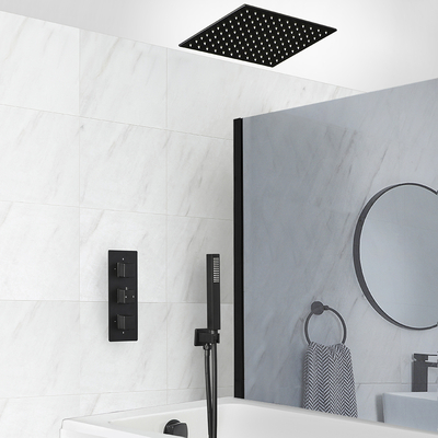 Créez un style design dans votre salle de bain avec le kit bain douche Preto. Il se compose d’un mitigeur thermostatique avec inverseur, d’un pommeau plafonnier à encastrer, d’un kit douchette et d’un vidage-remplissage baignoire. Ce mitigeur en laiton massif offre un contrôle facile du débit et de la température de l’eau et il dispose d’une sécurité anti-brûlures qui vous offre une expérience de douche sûre et confortable. D’un design encastré qui assure un rendu soigné, ce mitigeur est doté de commandes carrées, faciles à utiliser. Le pommeau encastrable diffuse une grande quantité d’eau avec un effet chute de pluie pour une expérience de douche apaisante et relaxante, tandis que la douchette fournit un jet d’eau rafraîchissant. La combinaison de vidage-remplissage et bonde baignoire est conçue pour une installation au niveau du trop-plein de votre baignoire. Grâce à ce set, vous n’aurez pas besoin d’une robinetterie sur gorge et vous obtiendrez un aspect ultra-moderne et chic dans vot...