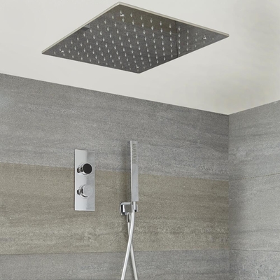 Apportez la dernière technologie de douche à votre salle de bain avec le kit de douche thermostatique Narus, composé d’un panneau de douche digitale, d’un pommeau encastré et d’un kit douchette. Il permet un contrôle précis de la température d’eau et d’alterner facilement entre les deux fonctions. Avec une simple touche, vous pouvez mettre la douche en marche et l’arrêter, sélectionner la fonction dont vous souhaitez servir, et ajuster la température en tournant la commande. Le voyant indicateur de la commande digitale change de couleur au fur et à mesure que l’eau se réchauffe jusqu’à la température souhaitée. Le grande pommeau de douche de 50 cm diffuse un tomber de l’eau en pluie rafraîchissante. Il s’encastre au plafond pour un aspect épuré et minimaliste. Caractéristiques de la douche digitale thermostatique Narus: Design encastrable pour un look minimaliste et contemporain Pommeau de douche encastrable en acier inoxydable de 50 cm muni de picots en silicone facile à nettoyer Douchette...