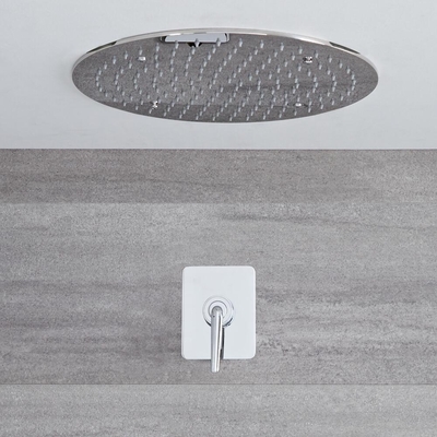 Cet ensemble encastrable, fait d’un mitigeur de douche mécanique Ora et le pommeau de douche rond de 40cm, est une excellente option pour ajouter un style élégant et minimaliste à une salle de bain moderne. Conçue pour être installée au plafond pour une finition plus soignée, la pomme de douche ronde procure un agréable tomber de l’eau en pluie bien enveloppant avec sa belle ampleur. Elle est faite d’un acier inoxydable et ses canules en silicone permettent d’éliminer facilement les dépôts de calcaire. Le mitigeur de douche en laiton massif présente un design contemporain unique et une finition chromée de qualité qui se fond facilement dans tous les décors.