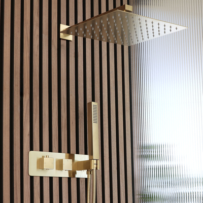 Idéal pour une salle de bain contemporaine, le mitigeur de douche thermostatique Lyra avec douchette et pommeau carré de 30 cm présente des lignes épurées et une finition or satiné durable. Le mitigeur en laiton massif dispose d’une sécurité anti-brûlures pour assurer une expérience de douche sûre et confortable. Les commandes carrées permettent un contrôle facile du débit et de la température d’eau. Fabriqué en acier inoxydable, le pommeau diffuse un tomber de l’eau en pluie rafraîchissant. Il est fourni avec un bras mural en laiton. Caractéristiques de la douche thermostatique Lyra: Design contemporain à finition or satiné – parfait pour les salles de bains modernes Pommeau de douche carré de 30 cm en acier inoxydable anticorrosif Douchette en ABS durable avec flexible de 1m 75 Contrôle thermostatique pour éviter les fluctuations et les extrêmes de température Commandes carrées facile à utiliser Mitigeur en laiton avec disques en céramique pour prévenir les fuites et les égouttements Sécurité...