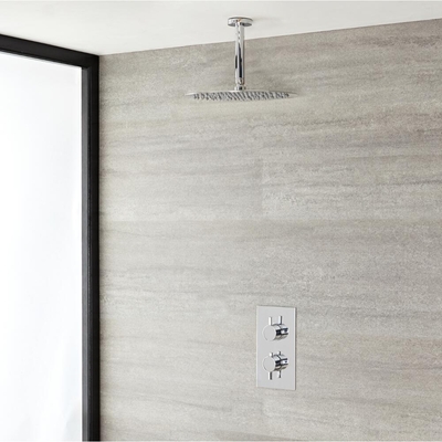Design résolument moderne, aux douces lignes arrondies, pour ce très bel ensemble de douche encastrable minimaliste à une fonction, pour un espace douche confortable et tendance. Caractéristiques: Pomme de douche ronde de 30cm Bras mural de 20 cm Accès dans le mur nécessaire Acier inoxydable chromé Picots caoutchouc anti-calcaire Structure fixe. Orientable sur l'axe du bras Informations relatives au mitigeur thermostatique: Matériau: laiton massif chromé Une fonction Robinet du haut: débit Robinet du bas: thermostat Doté de disques céramique ¼ de tour (contrôle précis) Sécurité anti-brûlure réglée à 38°C Cartouche homologuée aux spécifications EN1111 Plaque de finition incluse Installation murale Profondeur minimum requise: 75mm Informations supplémentaires: