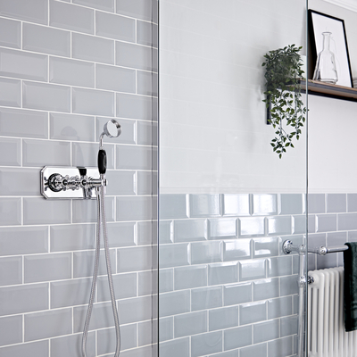Doté d’une finition chromée et noire au look rétro élégant, le kit de douche Elizabeth, composé d’un mitigeur thermostatique et d’un kit douchette est une excellente option pour rénover votre salle de bain.