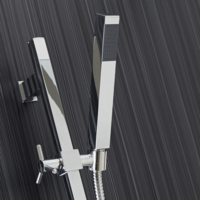 Modernisez votre salle de bain et créez-y un look épuré et minimaliste avec le kit douchette sur rampe Select, composé d’une douchette, d’un flexible et d’un raccord coudé. Il affiche des lignes carrées et une finition résistante chromée qui s’harmonisera avec tous les décors. Munie de picots en silicone anticalcaire, la douchette fournit un jet d’eau rafraîchissant. De plus, il est simple et rapide à régler cette douchette à la hauteur souhaitée. Caractéristiques du kit douchette sur rampe Select: Dimensions: l. 2, 5 cm x P 2, 5 cm x H 21 cm Design moderne – idéal pour les salles de bains contemporaines Douchette fabriquée en ABS durable à la finition chromée Fourni avec un flexible de 150 cm, une rampe de 70 cm et un raccord coudé Convient à tous les systèmes de plomberie Raccords 1/2” Pression recommandée: 0, 2 bar Garantie: 2 ans Qu’est-ce qui est inclus ? Douchette avec flexible de 150 cm Rampe de 70 cm et raccord coudé