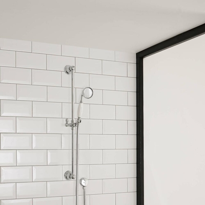 Le kit douchette Elizabeth, composé d’une douchette sur rampe, d’un flexible de 1, 5 m et d’un raccord coudé, réhaussera le style de votre salle de bain rétro. Doté d'une finition chromée résistante et de détails en céramique blanche, la douchette sur rampe allie un design élégant à une superbe fonctionnalité. Fabriquée en laiton, avec poignée en céramique, elle diffuse un jet d'eau rafraîchissant et peut être réglée à la hauteur désirée. Combinez ce kit à un mitigeur de douche thermostatique blanc et chromé Elizabeth et à d'autres articles de la collection pour une belle salle de bain rétro et un look parfaitement harmonieux. Caractéristiques du kit douchette Elizabeth: Design rétro – parfait pour les salles de bains d’inspiration vintage et authentique Fabriqué en laiton massif durable à finition chromée Douchette ergonomique avec poignée en céramique blanche Comprend une douchette avec flexible de 1m 5 et support Fabriqué en laiton massif durable à finition chromée Convient à tous les systèmes de plomberie Conçu pour être utilisé avec un mitigeur de douche exposé ou encastré Raccord d’entrée 1/2” Pression d’eau minimum recommandée: 0, 5 bar Garantie: 10 ans Qu’est-ce qui est inclus ? Douchette avec flexible de 1m 5 Rampe et raccord coudé en laiton Vous aurez également besoin de: (voir nos produits auxiliaires) Mitigeur de douche exposé