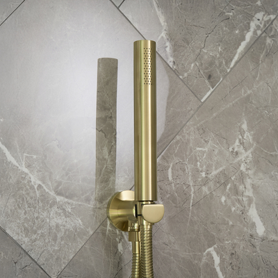 Créez un look moderne dans votre salle de bain avec le kit douchette Otto, completé par son support mural et raccord coudé intégré. Fabriquée en laiton massif pour une sensation de qualité, cette douchette présente un design contemporain et ergonomique et une finition résistante à l'usure. Associez-le à d'autres articles de la collection Otto pour créer une salle de bain moderne et époustouflante. Caractéristiques: Fabriqué en laiton en finition or satiné Flexible gaine en laiton de 1.75m, un support mural et un raccord coudé Raccord d'entrée 1/2" Pression recommandée: 0, 5 bar Qu'est-ce qui est inclus ? Douchette avec flexible de 1, 75 m Support mural et raccord coudé