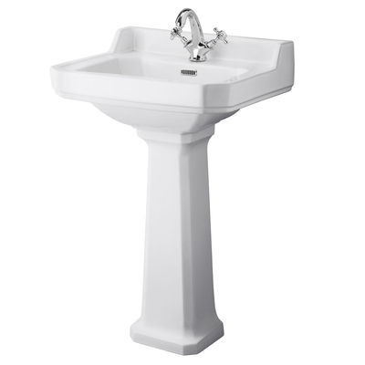 Le lavabo sur colonne Richmond est idéal pour apporter un style rétro et chic à votre salle de bain. Fourni avec une colonne intégrale qui dissimule la tuyauterie, ce lavabo présente un design intemporel et une finition blanche émaillée qui est résistante et facile à nettoyer. Offrant beaucoup d’espace pour se laver, il est fabriqué en céramique durable et de première qualité. La plage de ce lavabo est pré-percée d’un trou unique pour la robinetterie – pourquoi ne pas compléter le look avec l’un de nos mitigeurs lavabo rétro ? Associez-le à d’autres articles de la collection Richmond pour un look élégant dans votre salle de bain Caractéristiques du lavabo sur colonne rétro Richmond: Dimensions: l. 59, 5 cm x P 47 cm x H 90, 5 cm Design rétro pour un look intemporel et élégant Colonne qui dissimule la tuyauterie pour un aspect soigné Plage pré-percée d’un trou pour la robinetterie