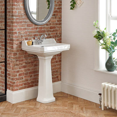 Si l’idée de créer une salle de bain élégante et rétro vous attire, alors le lavabo sur colonne Richmond de 59, 5cm par 47cm est le produit qui vous convient. Ce lavabo fourni avec une colonne intégrale permettant de dissimuler la tuyauterie, fabriqué en céramique de qualité permet un nettoyage facile, notamment grâce à sa finition blanche émaillée résistante. La plage est pré-percée d’un trou pour la robinetterie, vous pouvez compléter le look avec l’un de nos mitigeurs pour lavabos rétro. N’hésitez pas à consulter les autres articles de la collection Richmond pour créer un look élégant dans votre salle de bain. Caractéristiques du lavabo sur colonne rétro Richmond: Dimensions: l. 59, 5 cm x P 47 cm x H 95, 4 cm Design rétro pour un look intemporel et élégant Hauteur confortable – parfait pour les personnes ayant peu de mobilité ou de grande taille Colonne dissimulant la tuyauterie pour un aspect soigné Plage pré-percée d’un trou pour la robinetterie – compatible avec un mitigeur pour lavabo...