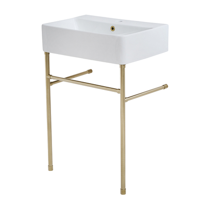 Transformez votre salle de bain et créez-y un look contemporain et élégant avec le lavabo sur pieds or satiné Exton de 60 cm par 42 cm.. Ces pieds minimalistes et épurés renforceront le look moderne de votre salle de bain. Ils sont dotés d’une finition résistante et fabriqués en acier inoxydable durable. La barre porte-serviettes intégrée vous offre un moyen pratique et élégant de garder vos serviettes à portée de main. Le lavabo offre beaucoup d’espace pour se laver et présente un style tendance. Fabriqué en céramique résistante, il est doté d’une finition blanche émaillée, facile à nettoyer. Il est fourni pré-percé d’un seul trou pour la robinetterie, parfait pour une utilisation avec l’un de nos mitigeurs pour lavabo monotrou. Associez-le à d’autres articles de la collection Exton pour un look harmonieux et ultra-moderne dans votre salle de bain. Caractéristiques: Dimensions: l. 60 cm x L 42 cm x H 85 cm Design moderne – parfait pour les salles de bain contemporaines Barre porte-serviett...