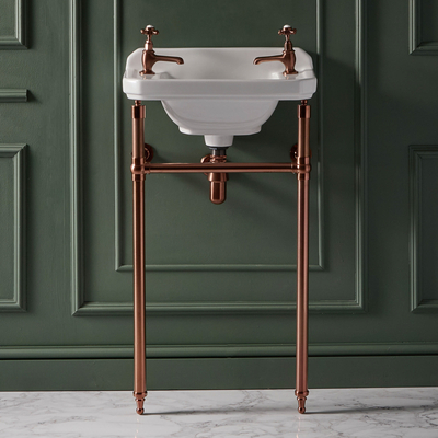 Accentuez le look rétro de votre salle de bain et créez-y un style chic et élégant avec le lavabo sur pieds Richmond. Il n’y passera pas inaperçu, grâce à sa finition cuivre satiné mat et à son design vintage. Ce lavabo est fabriqué en céramique de première qualité à la finition blanche émaillée qui est résistante et facile à nettoyer. Associez-le à de la robinetterie lavabo cuivre satiné mat Elizabeth et à d’autres articles de la collection pour créer un look intemporel et harmonieux dans votre salle de bain. Caractéristiques: