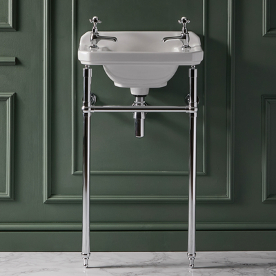 Apportez un style vintage à votre salle de bain avec l’élégant lavabo sur pieds Richmond. Fabriqué en céramique haut de gamme, le lavabo offre beaucoup de place pour se laver et présente une finition blanche émaillée qui est résistante et facile à nettoyer. Les pieds en acier inoxydable sont dotés d’une finition durable et leur design rétro s’harmonisera avec toutes les salles de bains. Associez-le à la robinetterie lavabo Elizabeth et à d’autres articles de la collection pour une salle de bain rétro au look harmonieux. Caractéristiques: Dimensions: l. 51, 5 cm x P 30 cm x H 92, 5 cm Finition résistante Chromée Pré-percé de deux trous Lavabo a hauteur confortable
