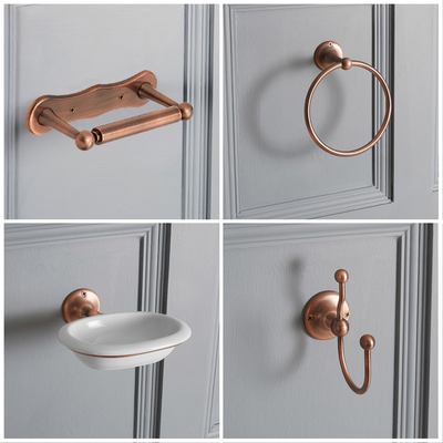 Accentuez le look de votre salle de bain rétro le pack d’accessoires Elizabeth.D’un design élégant, chaque accessoire est doté d’une finition bronze huilé pour créer un style intemporel. Cet ensemble se compose d’un dérouleur papier toilette, d’un anneau porte-serviette, d’un porte-savon en céramique avec son support et d’une double patère porte-peignoir. Associez-le à d’autres articles de la collection Elizabeth pour un look élégant et harmonieux dans votre salle de bain. Caractéristiques du pack d’accessoires 4 pièces Elizabeth: Design vintage et élégant – parfait pour les salles de bains rétro Accessoires assortis pour un look harmonieux Fabriqué en laiton massif à la finition durable bronze huilé Installation facile à l’aide de supports muraux Qu’est-ce qui est inclus ? Dérouleur papier toilette