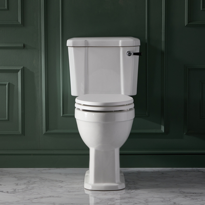 - assure un meilleur confort aux personnes de grande taille et à celles ayant des problèmes de mobilité Design rétro pour un look élégant et intemporel Réservoir de 6 litres avec fixations Commande à levier fabriquée en céramique et laiton avec finition chromée et noire Fabriqué en céramique résistante à la finition blanche émaillée – facile à nettoyer Abattant en bois d’ingénierie finition blanche haut de gamme à fermeture douce – installation simple et rapide Siège à fi...