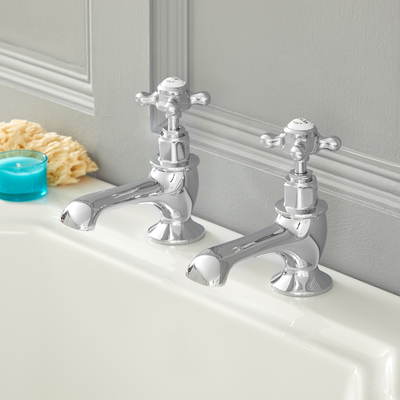 La paire de robinets rétro Elizabeth est parfaite pour ajouter une touche rétro à votre salle de bain. Fabriqués en laiton massif pour une durabilité garantie, ces robinets à la finition chromée et blanche s'harmonisent facilement avec tous les styles de salle de bain grâce à leur design élégant intemporel. Associez-les avec d’autres produits chromés et blancs de la gamme Elizabeth pour un look harmonieux et sophistiqué. Caractéristiques des robinets rétros Elizabeth: